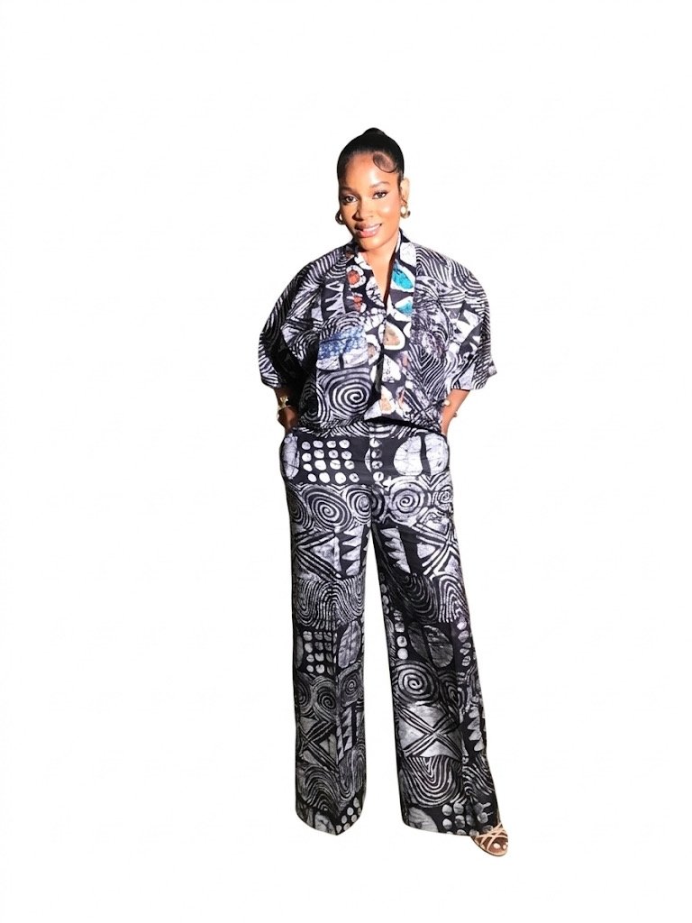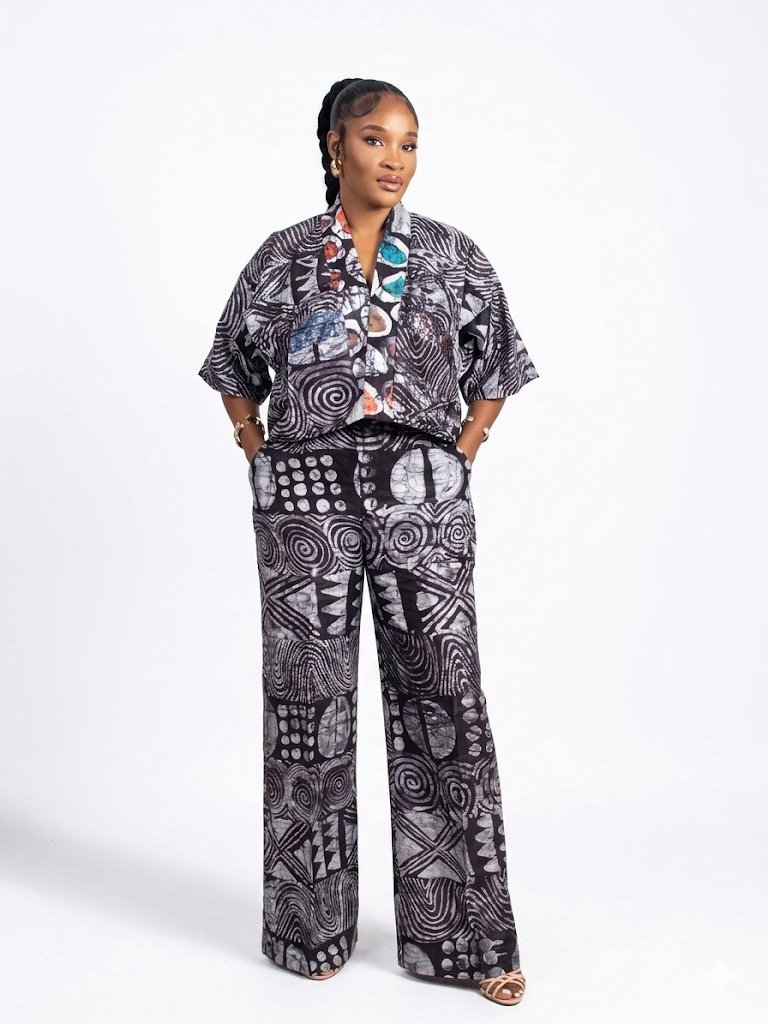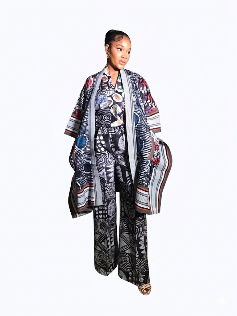 Elevate your wardrobe with the D’Onyx Midnight Adire Luxe Set, a sophisticated two-piece ensemble featuring a stylish Adire crop top paired with elegant wide-leg trousers. Designed in striking black and white patterns, this set blends timeless African artistry with modern luxury, creating a bold yet effortlessly refined look perfect for brunch, events, or upscale outings.
