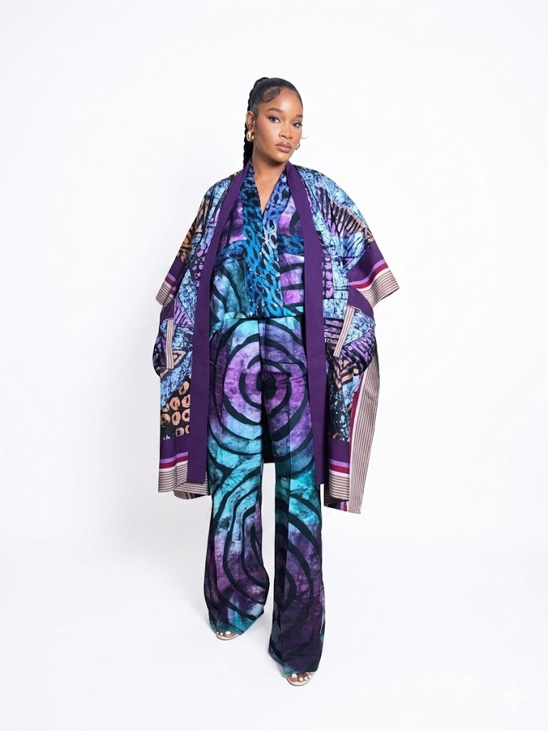 Step into refined elegance with the D’Onyx Royal Indigo Adire Luxe Set, a sophisticated two-piece ensemble featuring a stylish Adire crop top and wide-leg trousers. Designed with rich indigo, teal, and purple tones, this set blends traditional artistry with modern luxury, creating a bold yet graceful silhouette perfect for upscale outings, brunch, or resort wear.