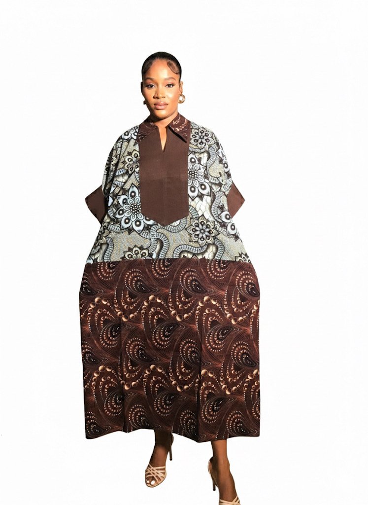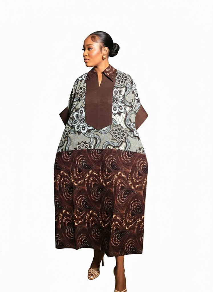 A sophisticated two-pattern ensemble crafted from premium Ankara fabric—serving rich-aunty elegance, soft chic charm, and undeniable boss-lady energy in every detail.